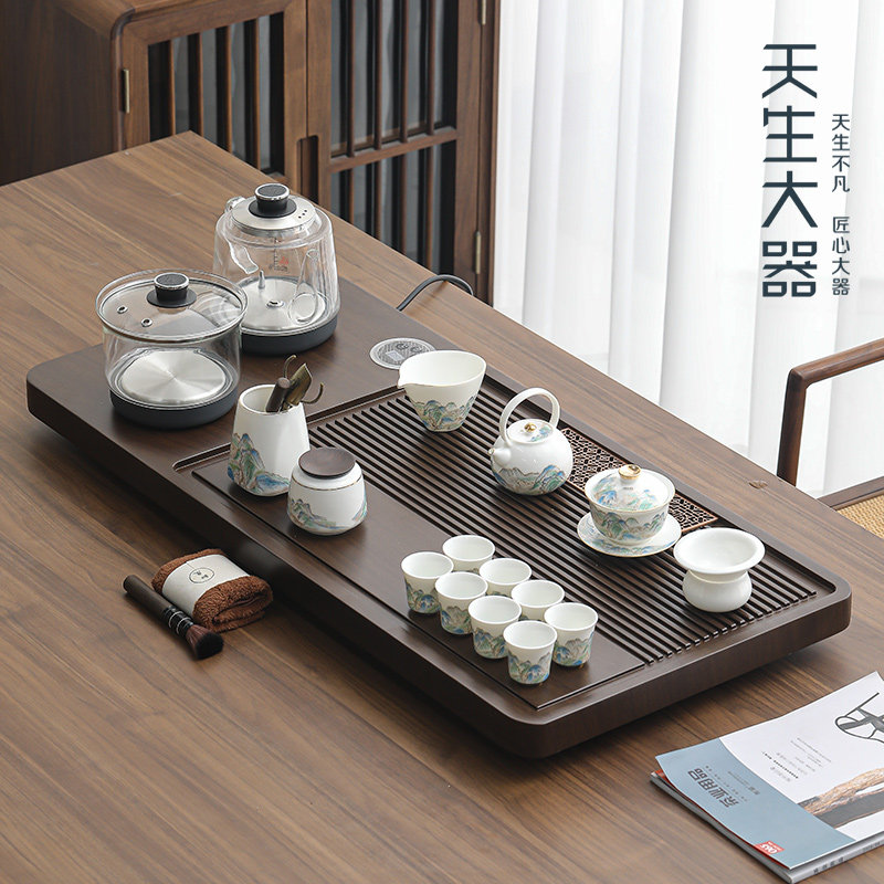 Embedded crosswalk integrated tea tray embedded crosswalk integrated tea tray painting Mountain side to flush the pot set embedded crosswalk integrated tea tray painting Mountain lifting beam pot set embedded crosswalk integrated tea tray white porcelain thousands of miles