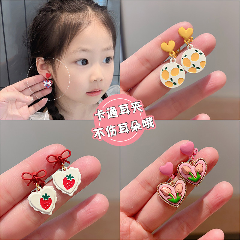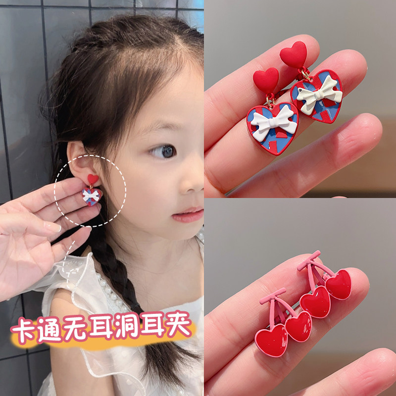 Children without earbuds ear clamps free of pain without pain ear nails little girl earrings without hurting ear baby girl earrings girl accessories-Taobao