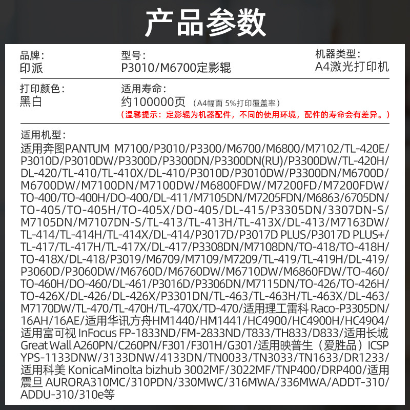 Applicable PANTUM RUNNING M6700D FIXING LOWER ROLL M6700DW M7100DN GLUE ROLL M7100DW Printer Pressure rollers M7200FD M7