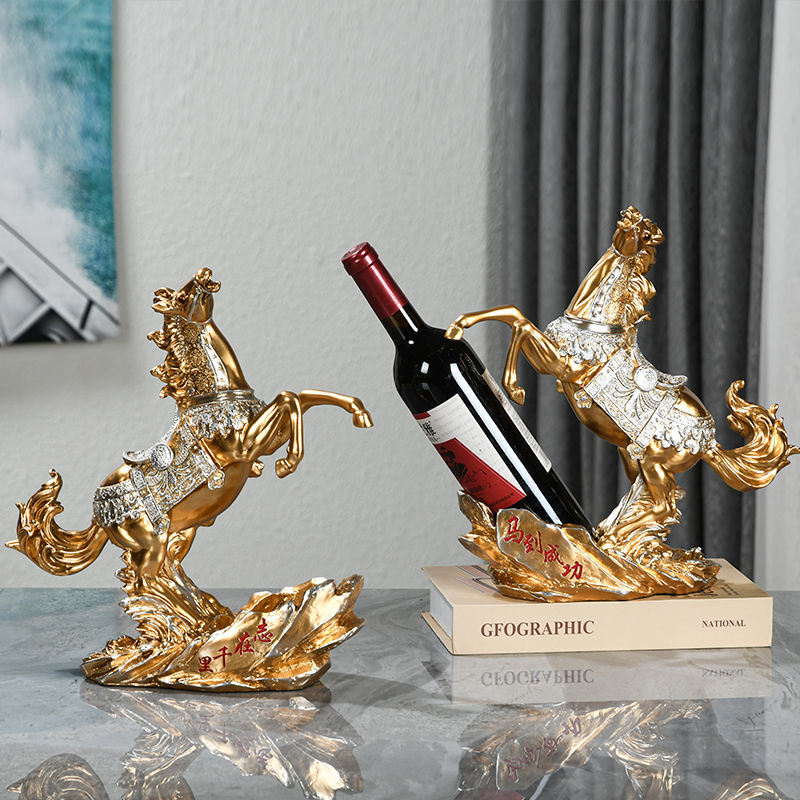 HF068A golden double battle horse red wine rack HF068B champagne gold double battle horse red wine rack HF068-1 elegant blue double battle horse red wine rack HF067A golden log in thousands of miles red wine