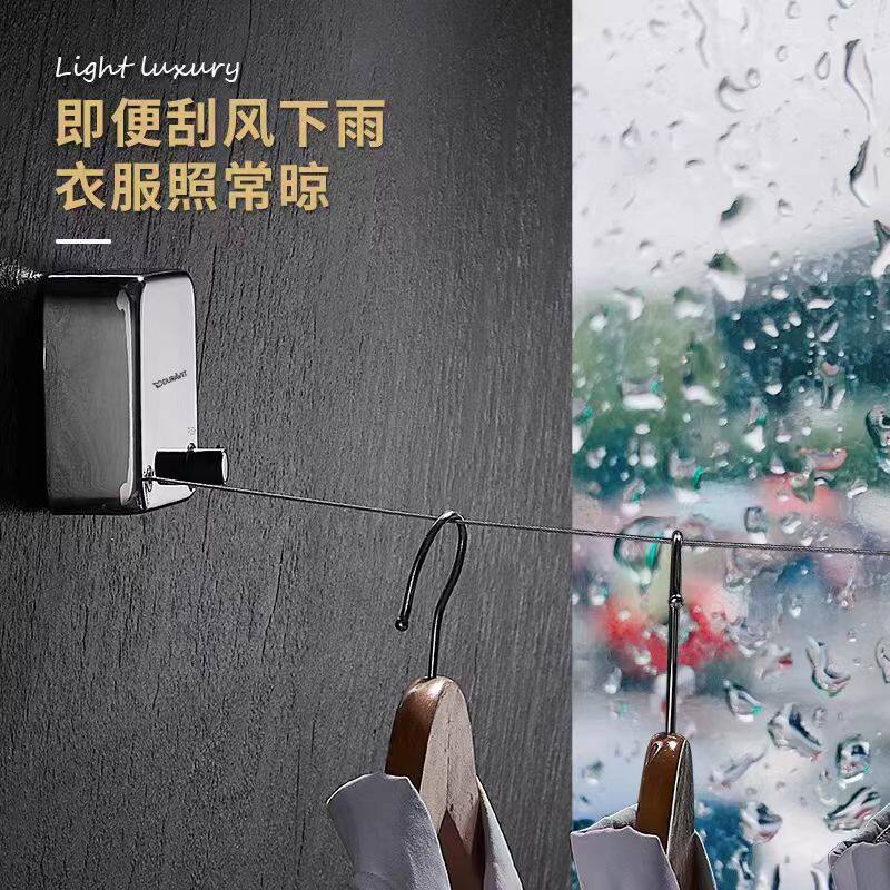 German invisible telescopic clothesline indoor free of punch toilet bathroom clotheshorse balcony constriction steel wire rope zip-Taobao