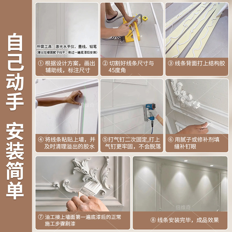 PU line French corner flower TV background wall border strip imitation gypsum line decorative strip suspended ceiling European and American style design