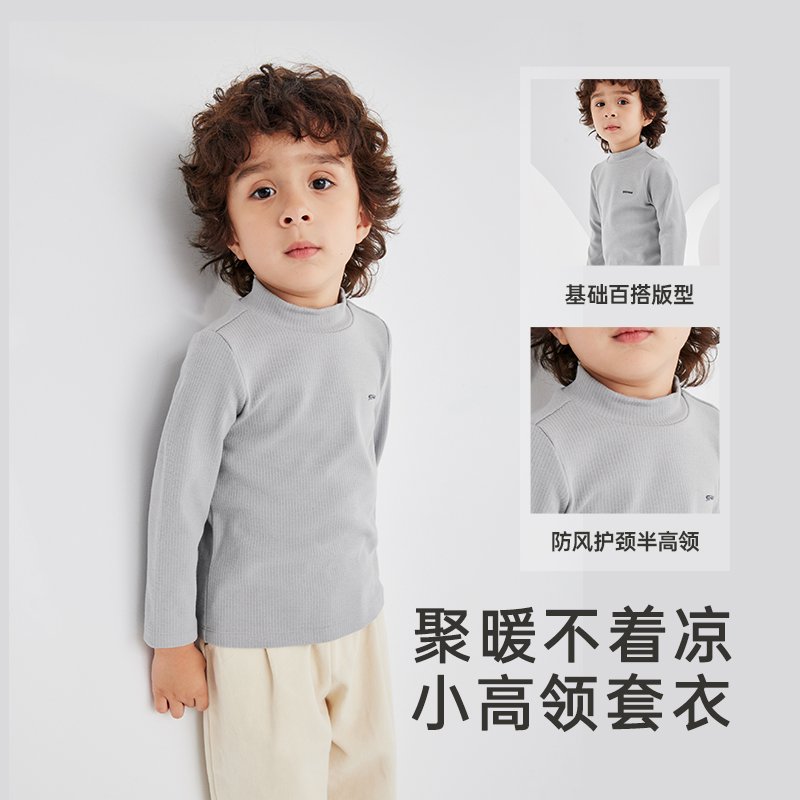 English children half-height collar bottom-shirt autumn winter boy girl's autumn clothing autumn clothes 2023 new baby long sleeve T-shirt-Taobao