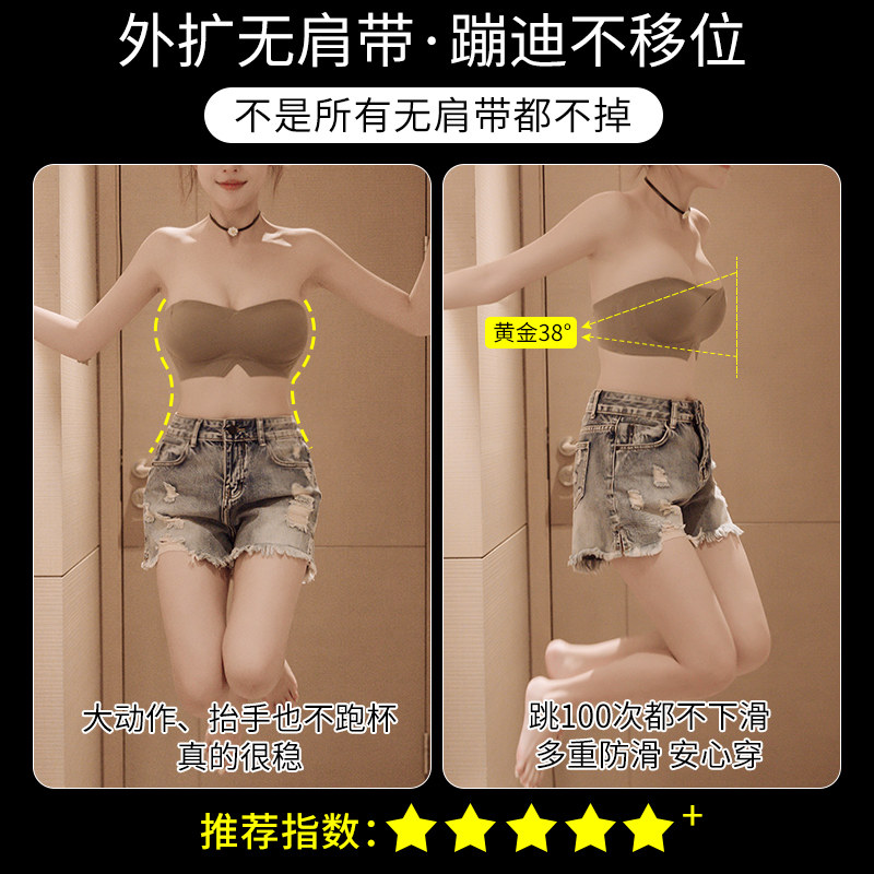 Outer Flared Underwear Lady without shoulder strap Anti-slip for small breasts Large Autumn Winter Smear Breast wrap Wrap Chest Patch Invisible Thickening Bra-Taobao