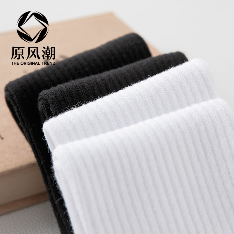 Original Craze 100% Cotton Socks Men's Midbarrel Socks Spring Autumn Pure Cotton Suction Khan Breathable White Sports Socks Long Barrel Black Socks-Taobao