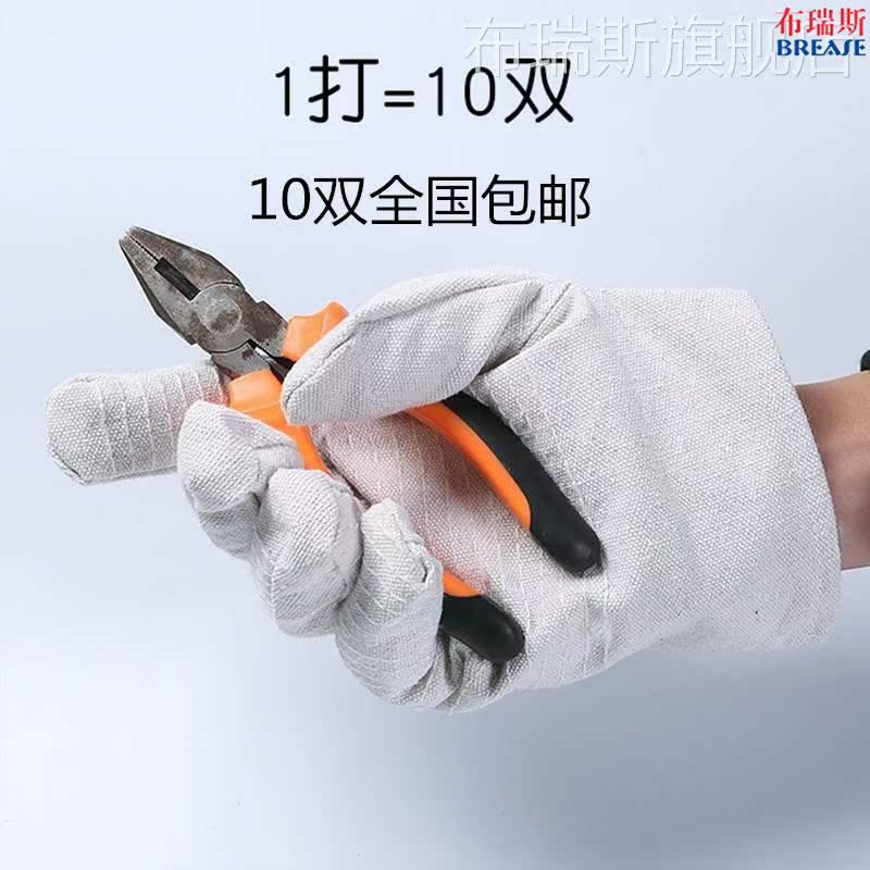 Brisbane gloves wear-resistant work hand labor insurance 24-line double-layer fully lined pure cotton canvas thickened welding machine repair and defense