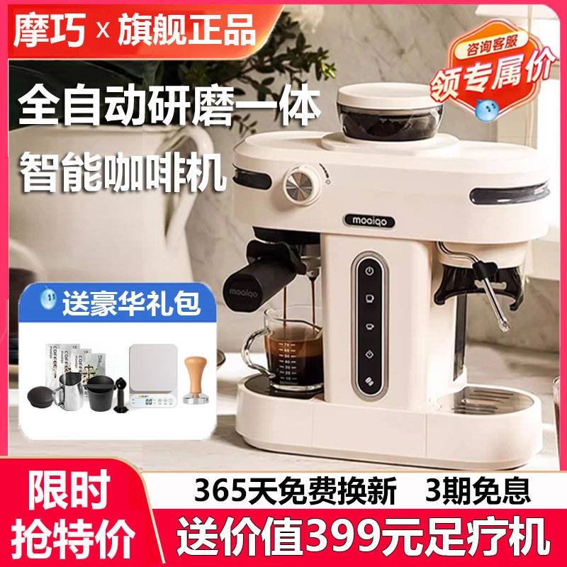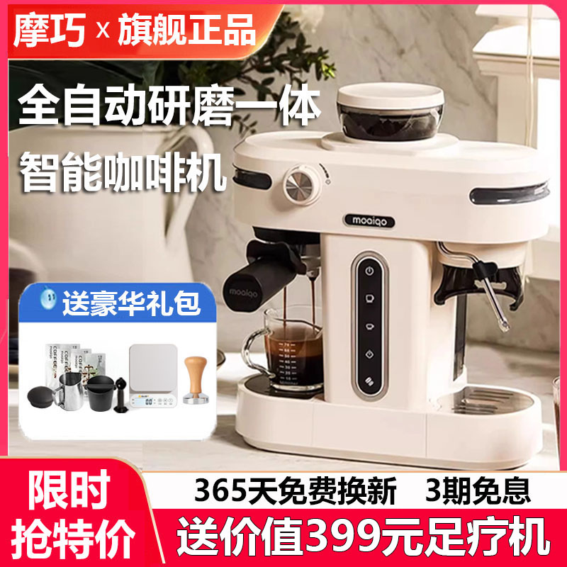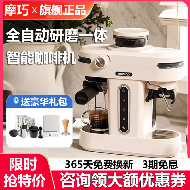 (National official after-sales service guarantee) fully automatic grinding integrated ultra-value good courtesy consultation customer service Modexo 9?9 pearl white 2 packs coffee powder lagoon cup retro green 2 packets coffee powder lakflower cup official