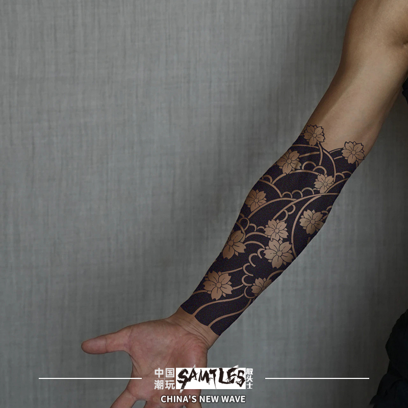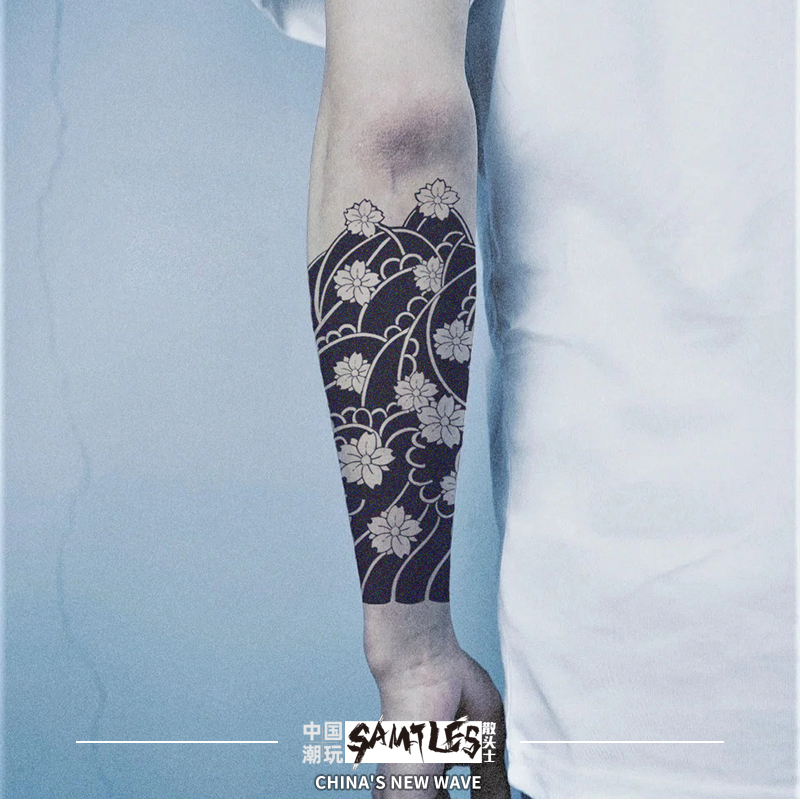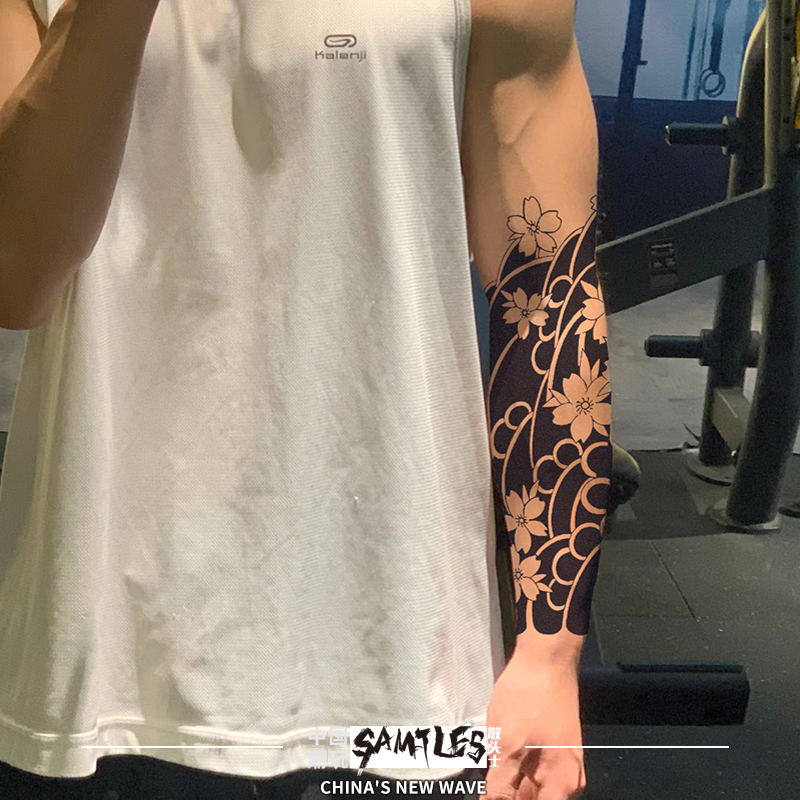 Grass Moto Day Style Old Traditional Tattoo Sticker Waterproof Male Durable Cherry Blossom Arm Semi-permanent High Sense Arm Big Picture-Taobao