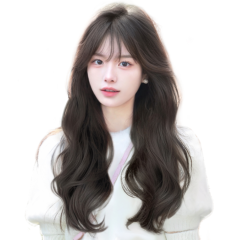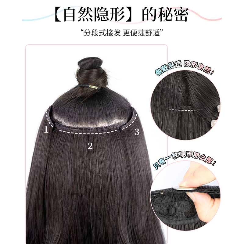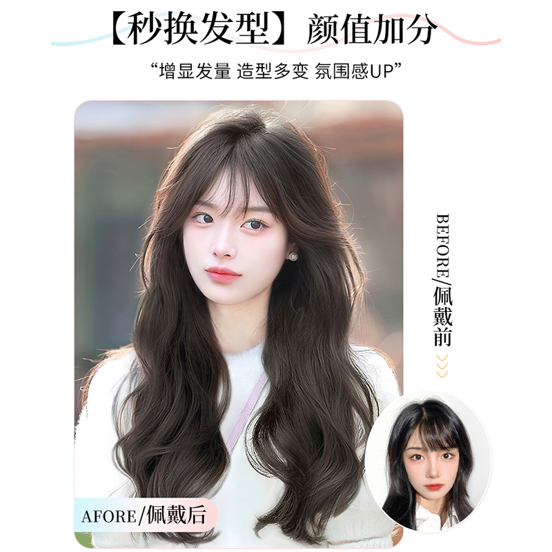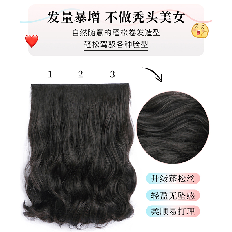 Wig woman long hair without mark and haircut light and thin section overhead fluffy weight gain three-piece large wave coil wig sheet-Taobao