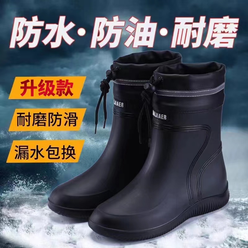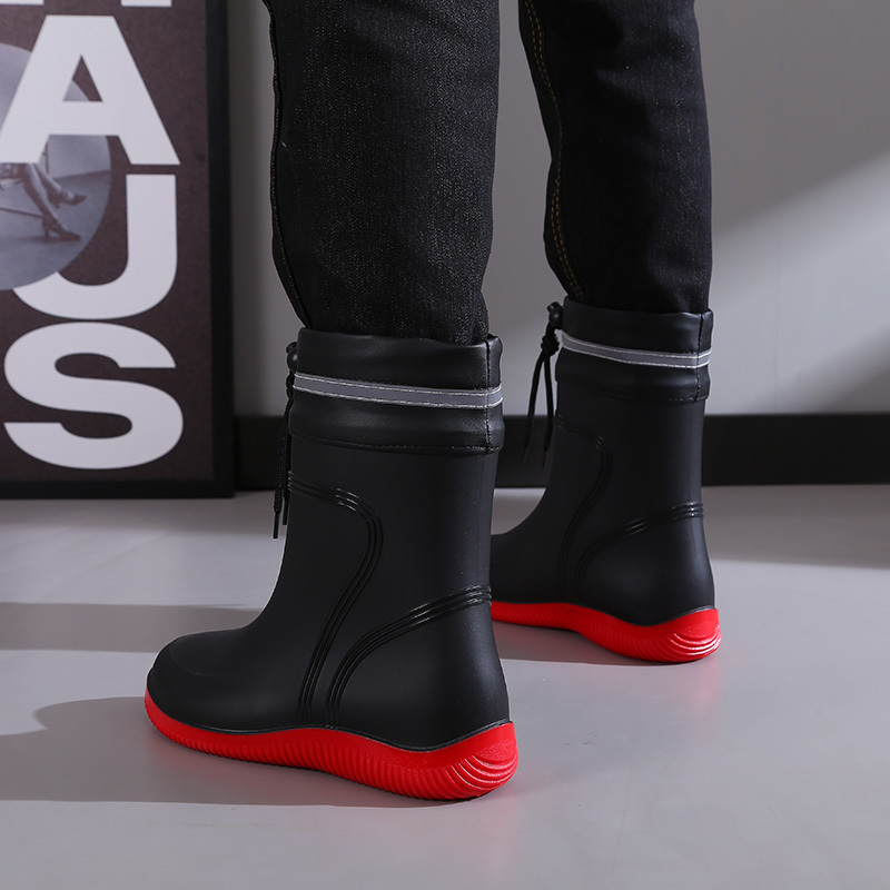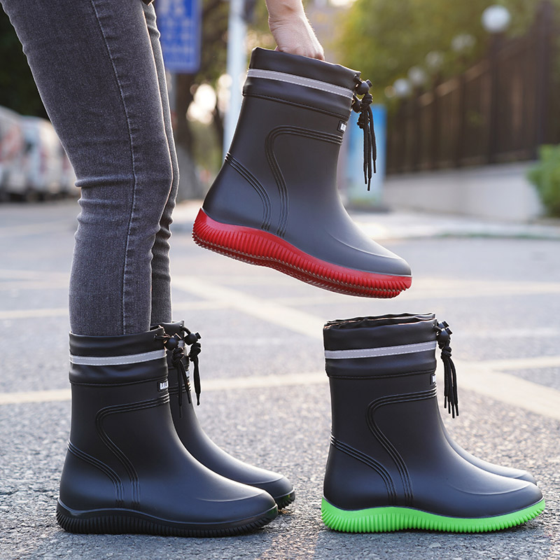 Upscale rain shoes men's bunches waterproof and waterproof shoes Short middle cylinder anti-slip rain boots bunches work rubber shoes men and women new