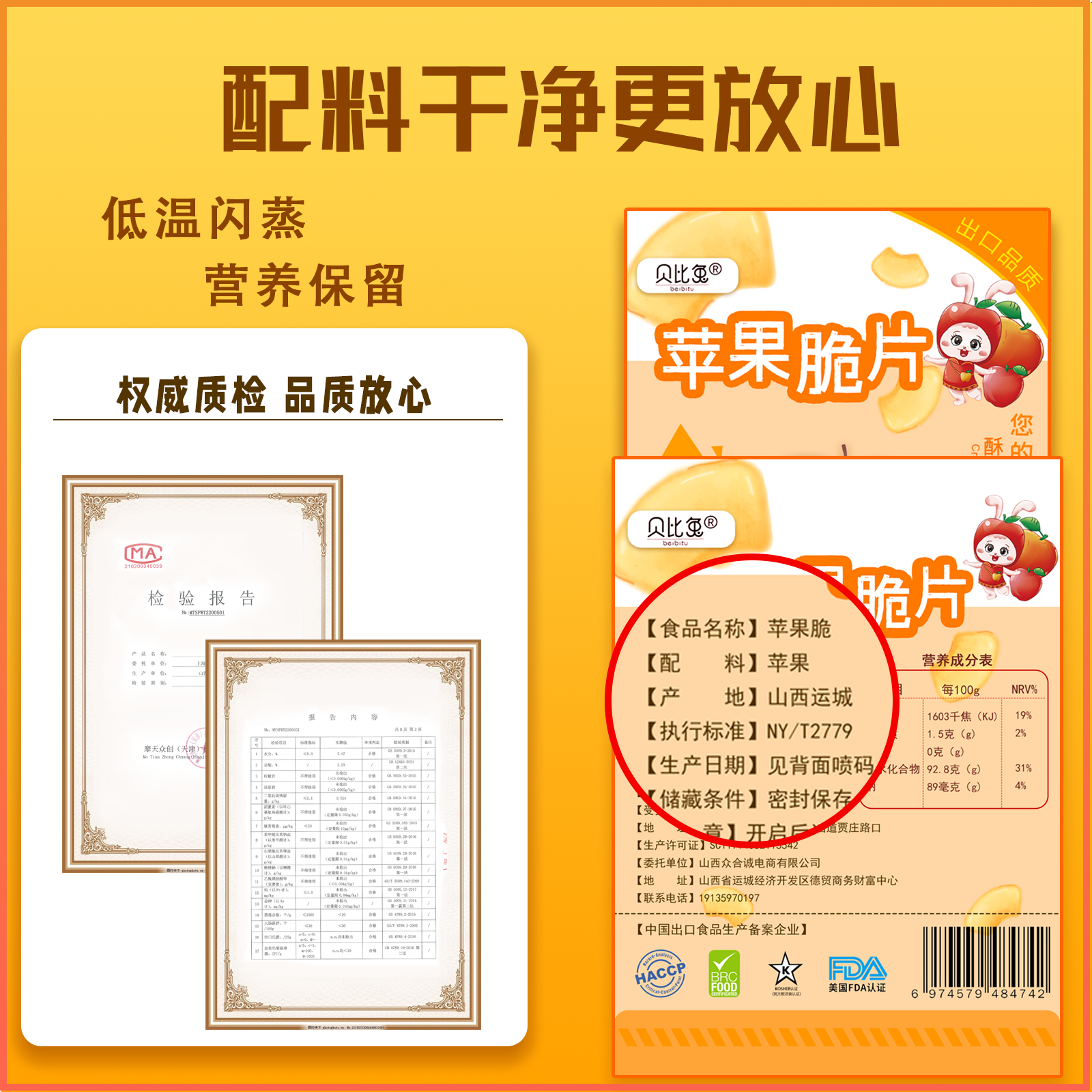 Pack of apple crisp slices 60g (no add non-fried) Three packs of apple crisp slices 180g (no add non-fried) Five packets of apple crisp slices 300g (no add non-fried) Six packets of apple crisp slices 3