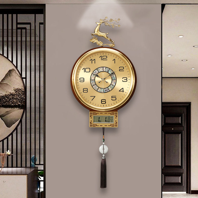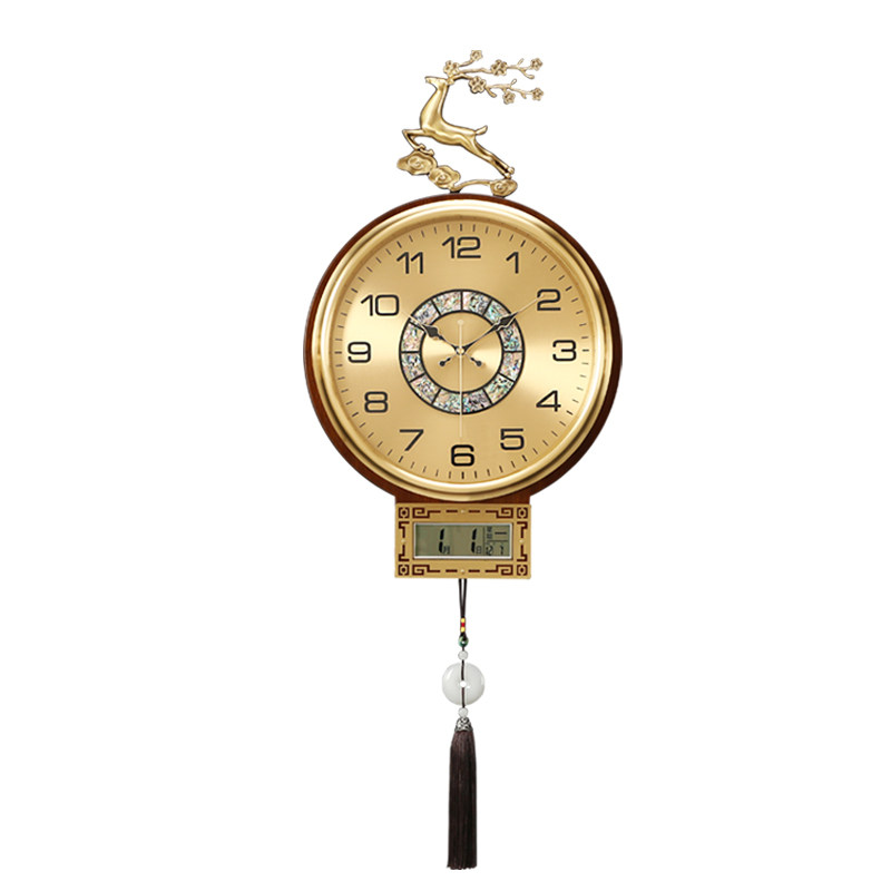 New Chinese brass hanging bell living room Wanyear calendar light extravagant decorative clock home mute wall hanging table creative clock-Taobao