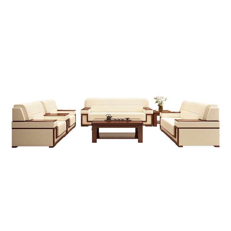 Office Sofa Office Reception Chinese Style Modern Villa Hotel Lobby Guest Area Real Leather Sofa Tea Table Combo-Taobao