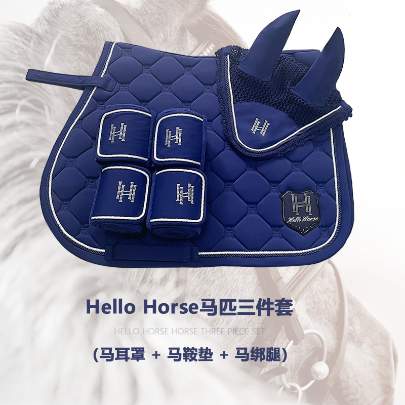 Hello Horses equestrian three-piece saddle cushion horse ear hood horse tie-leg wear-proof and anti-slip homochromatic tie horse-Taobao