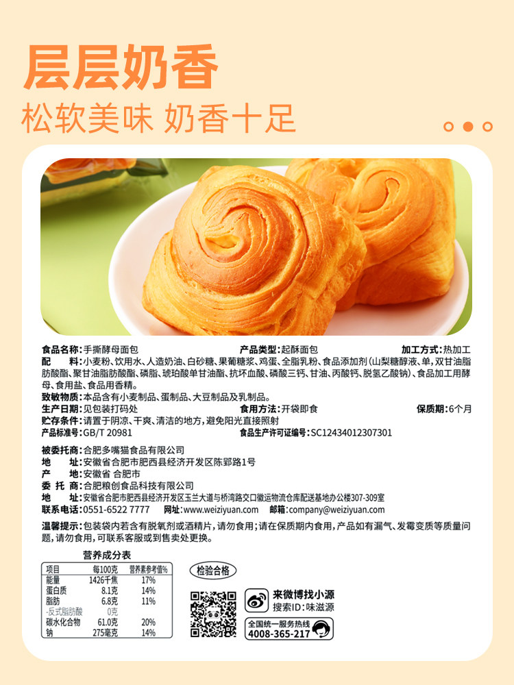 Pine soft and tasty milky aroma (total of 2) hands torn bread 1 delivered 1 piece (about 90g) (tasting recommended⭐) a total of 2 catties 1 large case (hand ripping bread 500g for 500g)