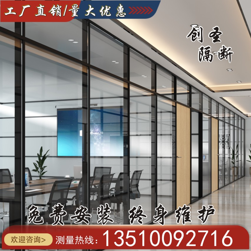 Office glass partition wall aluminium alloy customized soundproof double glass double glass shutter hollow tempered glass high partition-Taobao
