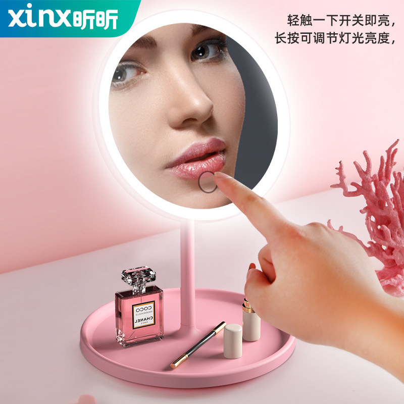 Tricolor pearl white-(2000MA large battery add mirror three dimming) Tricolor cherry blossom-(2000MA large battery add mirror three dimming) monochrome