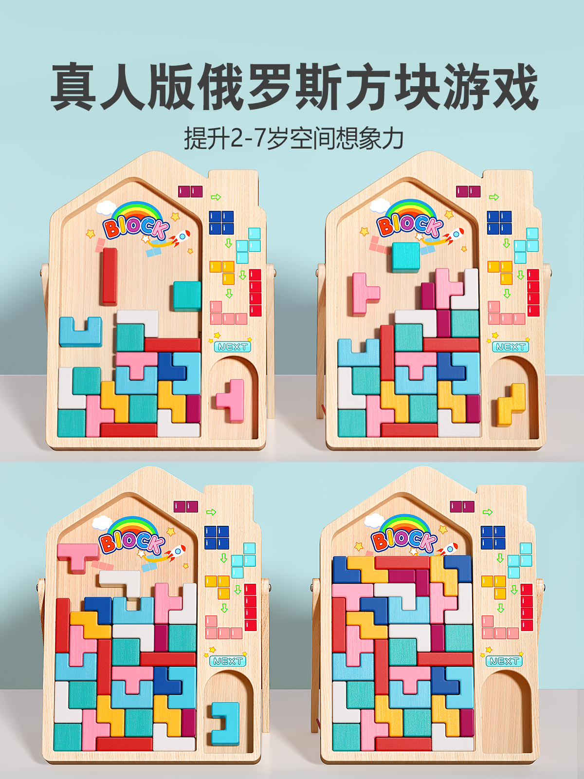 Classic Russian Tetris (40 blocks large grain building blocks) Classic Tetris (50 grain square teaching building blocks) Russia Tetris cartoon section Blue 10 knots Digital small train Russia