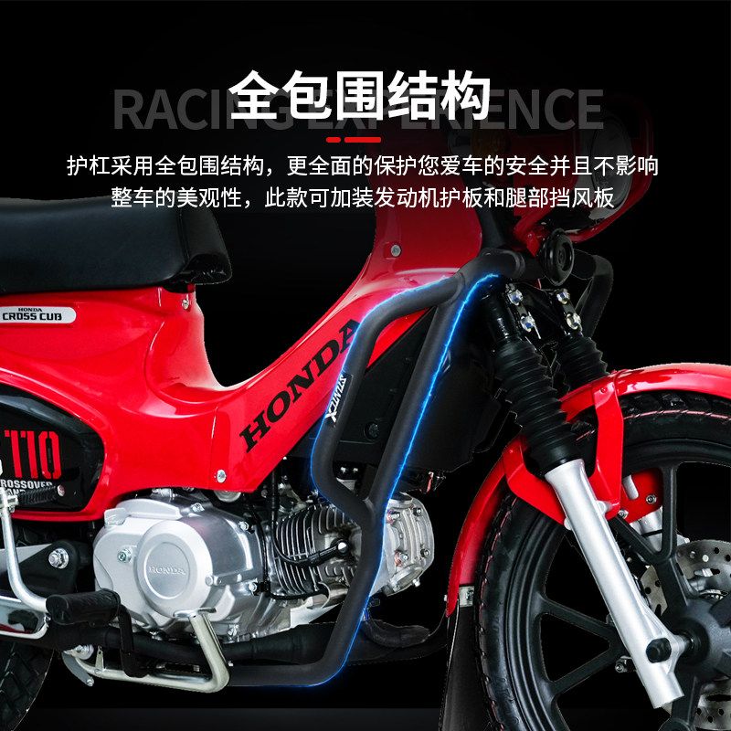 (standard bar) - later can be retrofitted with engine protection plate wind shield (streamlined section-standard bar) - late stage can be retrofitted with engine protection plate front shelving shelf dashboard expansion multifunction