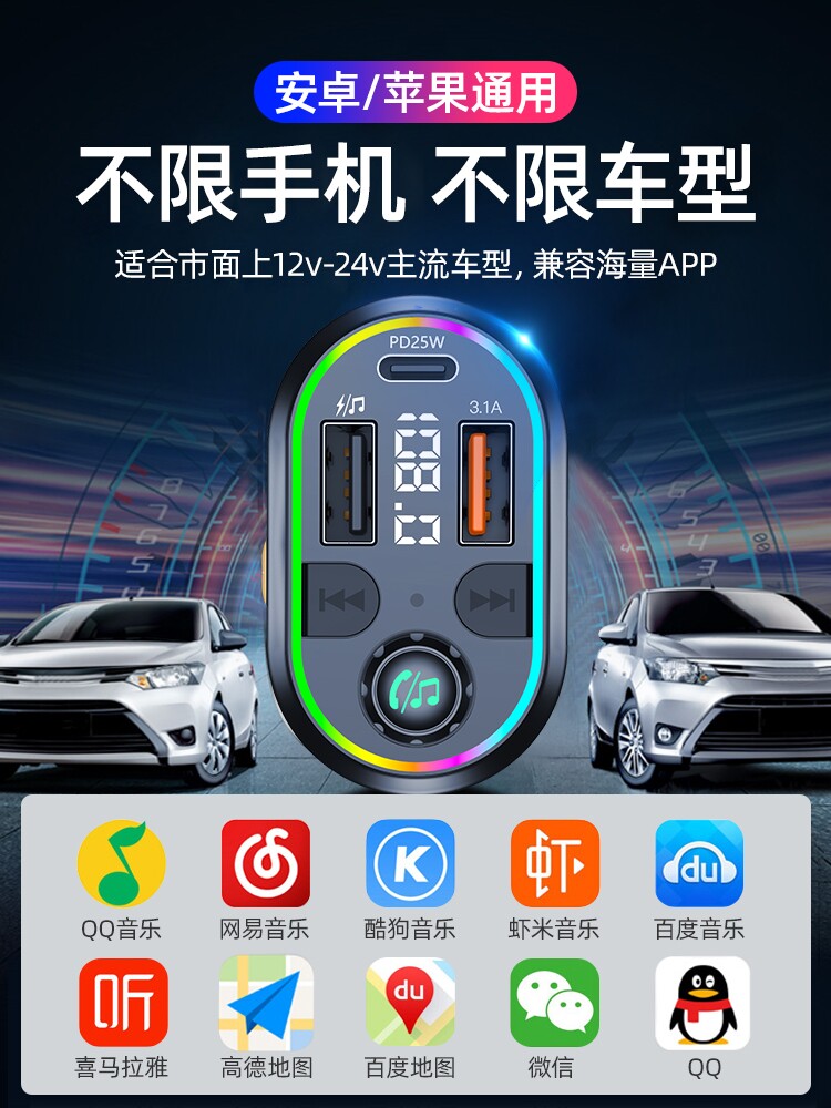 Car - board Bluetooth receiver without loss - free sound quality MP3 Play multi - function USB charger fast - charge cigarette supplies