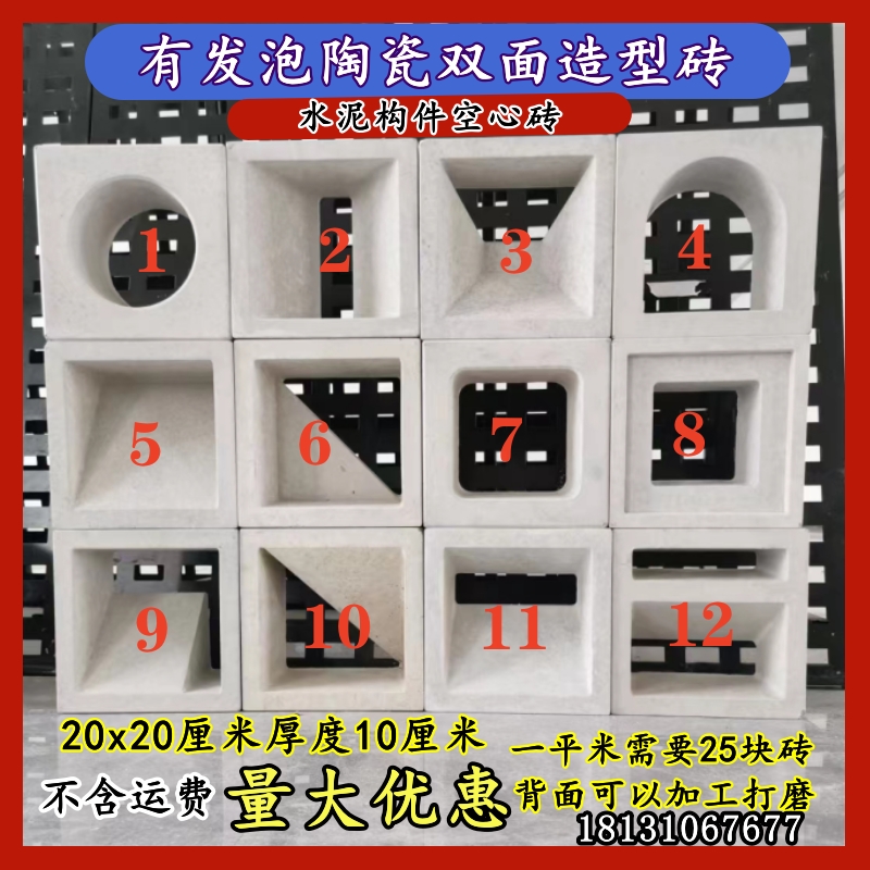 Net Red Cement Hollow Brick Decoration Hollowed-out Art Partition Styling components Building View Double Face Light Expanded Ceramics-Taobao