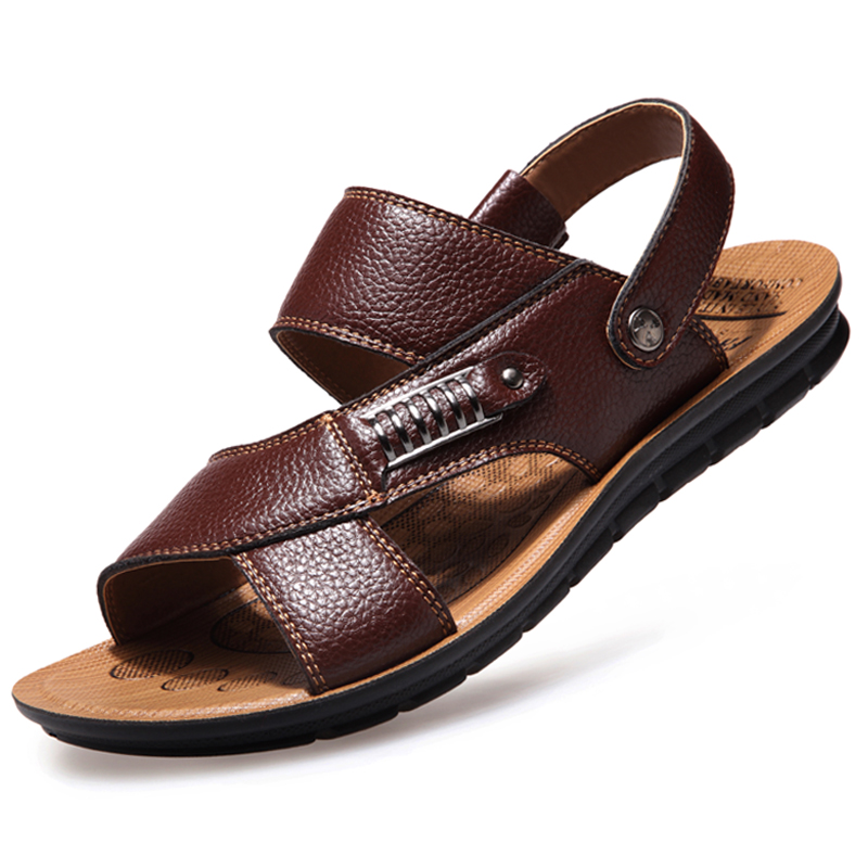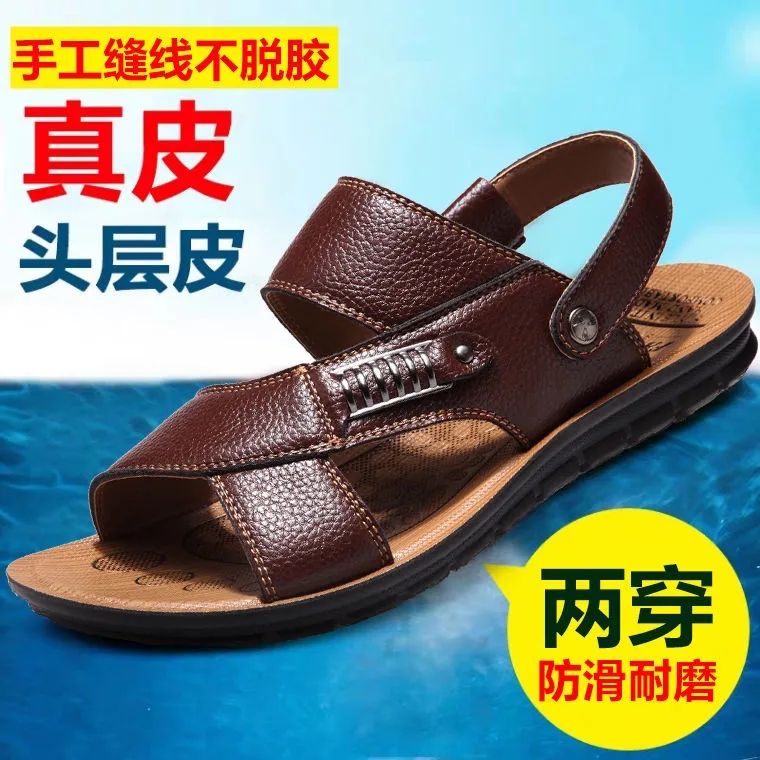 Sandals Men Genuine Leather 2023 Summer New Soft Bottom Beach Shoes Outwear Dad Non-slip Wear and wear Dual-use Sandals-Taobao
