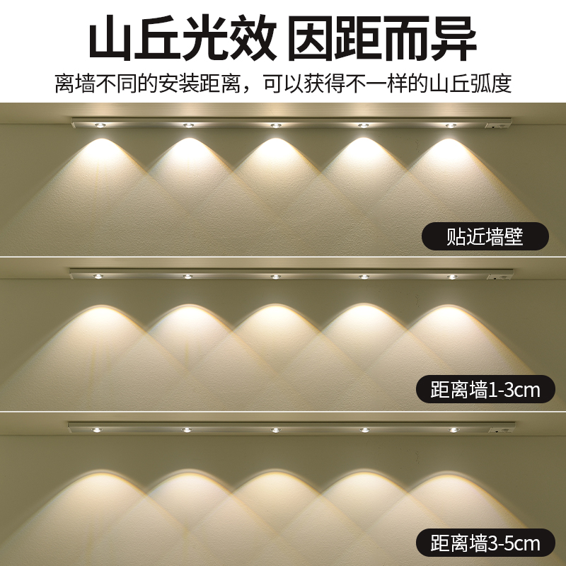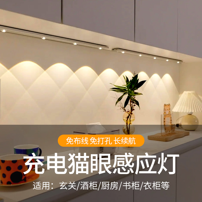 Remote control light strip Small hill Magnetic suction light with self-adhesive human body induction wireless led charging free wine cabinet cupboard-Taobao