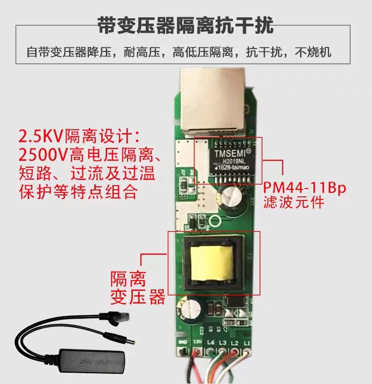 Ling view isolation type standard POE separator 48V to 12V 5V network cable power supply module monitoring special POE high power 1100 trillion waterproof separator to support the Greater China Sea Concam-Ta