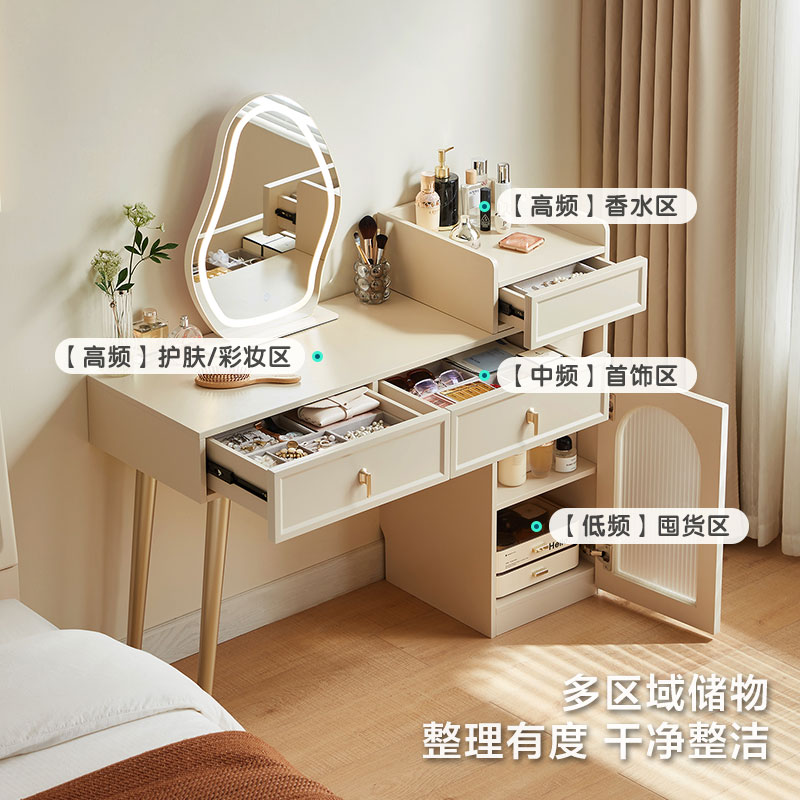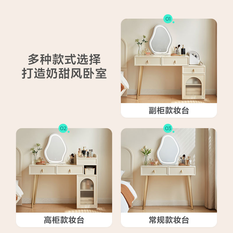Lin's Home Faffel Cream Wind Fighting Cabinet Dresser integrated home retractable makeup Table Lin's wood industry TO3C-Taobao