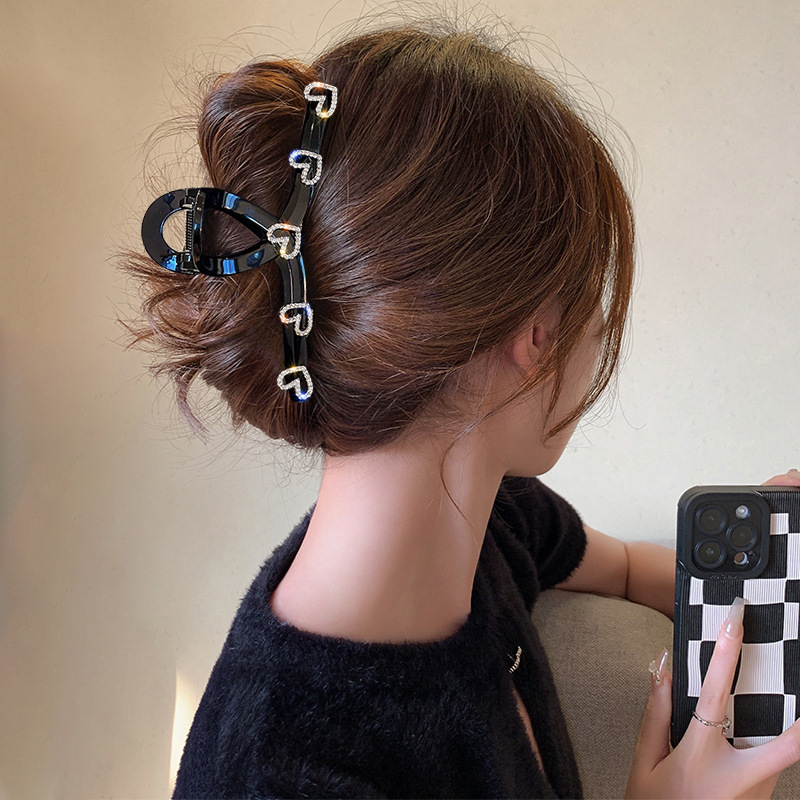 Love rhinestone early spring grab clip large clip headdress hair clip back of the head plate hair female hair accessories high-end shark clip