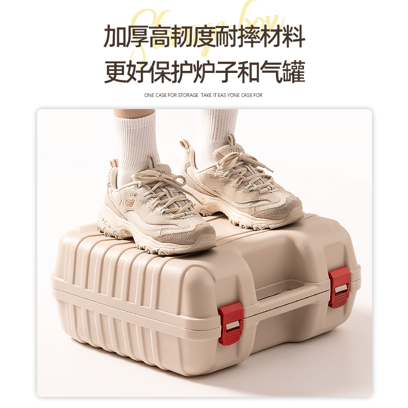 (Storage box only) full storage gas tank cassette stove suitcase - beige (storage box only) full storage gas tank cassette furnace suitcase - black (storage box only) upgraded storage bakeware gas tank cassette furnace suitcase
