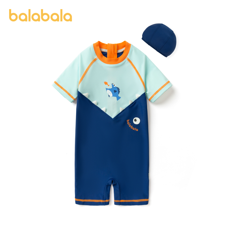 (mall the same section) Balabala Children's swimsuit suit boy swimming one-piece swimsuit baby bathing cap collage-Taobao