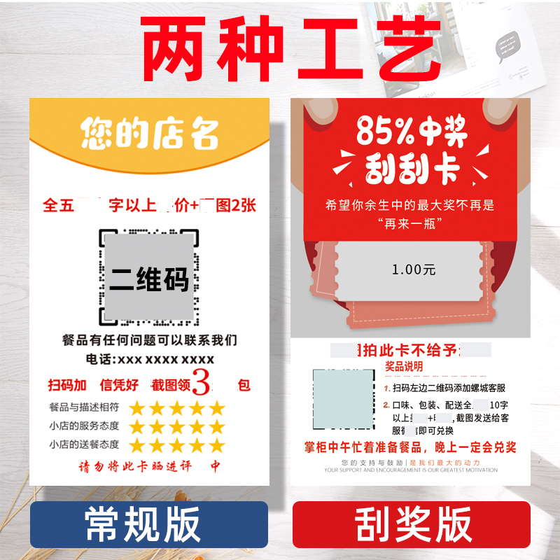 Takeaway Cards Customized Good Pinka 5 Stars Beauty Group Takeaway Catering Stickup Comments Small Card Shop After-sale Card Scrape Card Design Print Making-Taobao