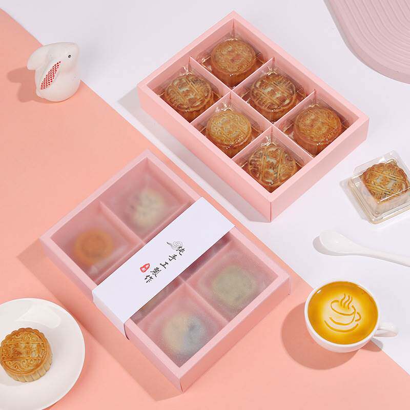 Frosted translucent pink egg yolk crisp packaging box mooncake snowy bridesmaid baking gift box Bull Rolling Sugar Cookie Box-Taobao