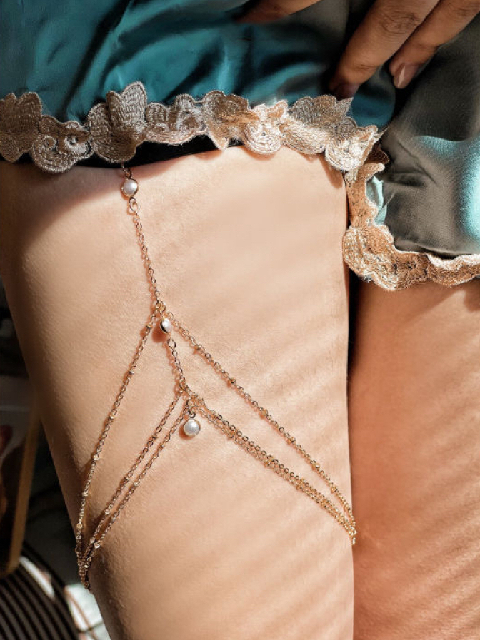 Multilayer Pearl Streaming Su Sexy Leg Chain Summer Casual Beach Accessories Skirt 100 Lap Metal Thigh Chain Leg Ring-Taobao