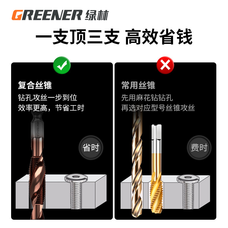 Green forest drilling attack hole integrated composite wire tapping screw tap suit drill tapping self-tapping screw m3 stainless steel special-Taobao