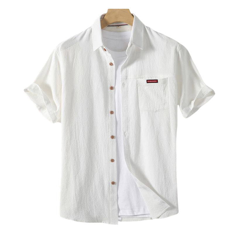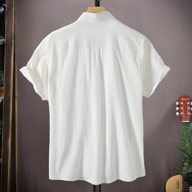 Cotton linen short sleeve shirt man 2023 Summer new men pure cotton half sleeve shirt boy casual pure color Previous clothes-Taobao
