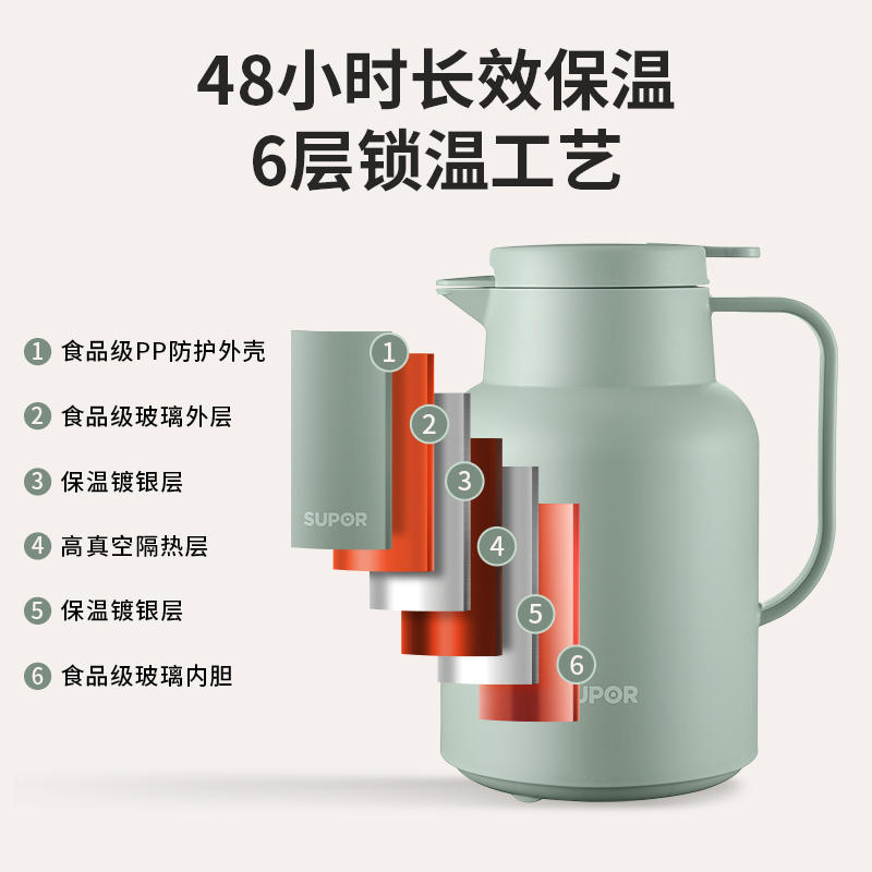 Supoir Insulation Pot Home Wedding Glass Liner Large Capacity Hot Water Bottle Warm Water Jug Dormitory Student Kettle-Taobao