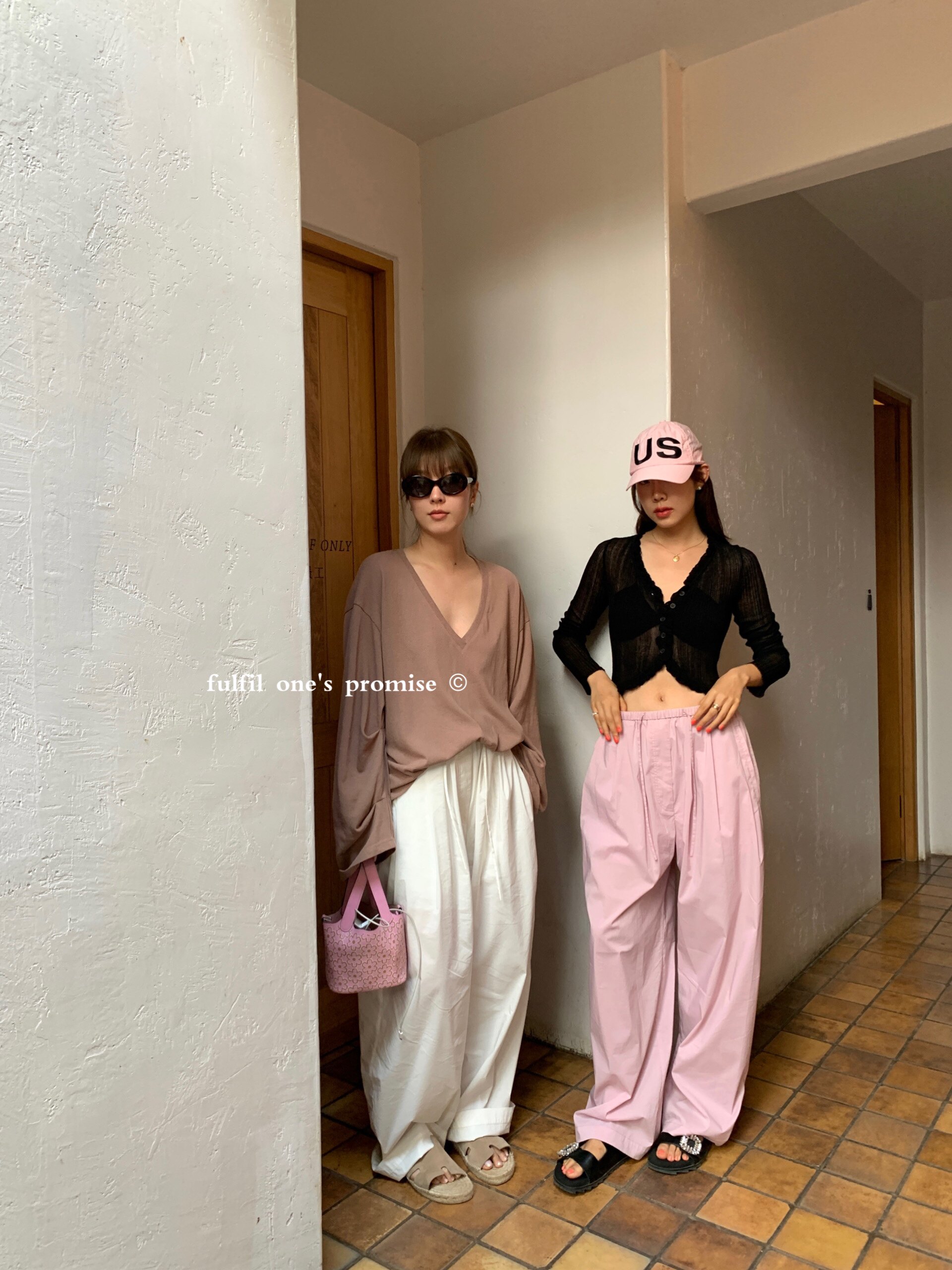 FFU Casual Pants Woman 2023 Summer slim 100 hitch Rope Wide Leg Pants Straight Barrel Loose Cool Pants Tug Pants-Taobao