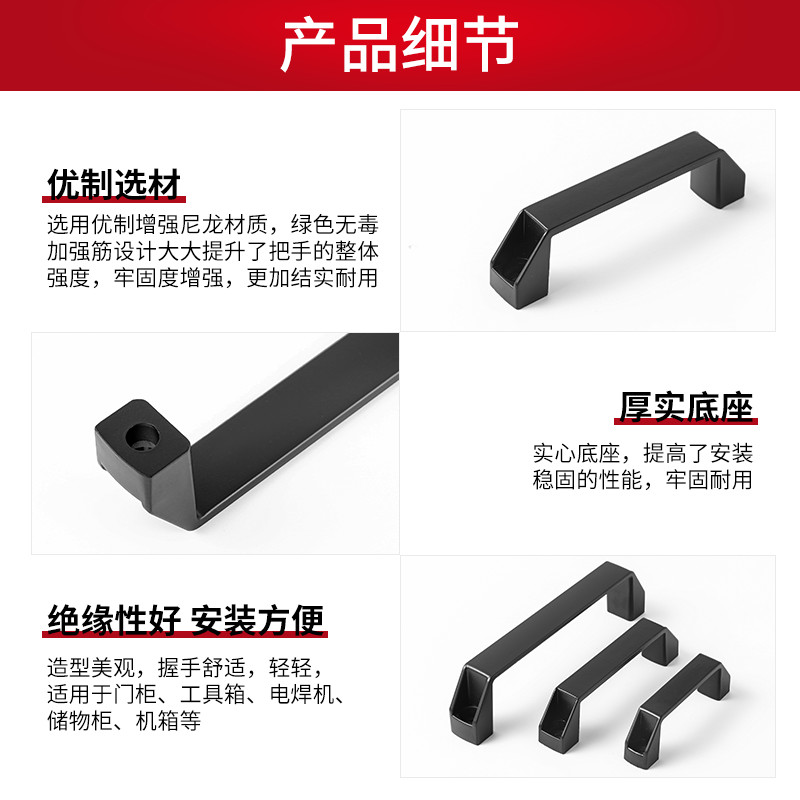Aluminum alloy pull handle thickened black handle nylon industrial Ming-fit square plastic case cabinet door handle machine tool-Taobao