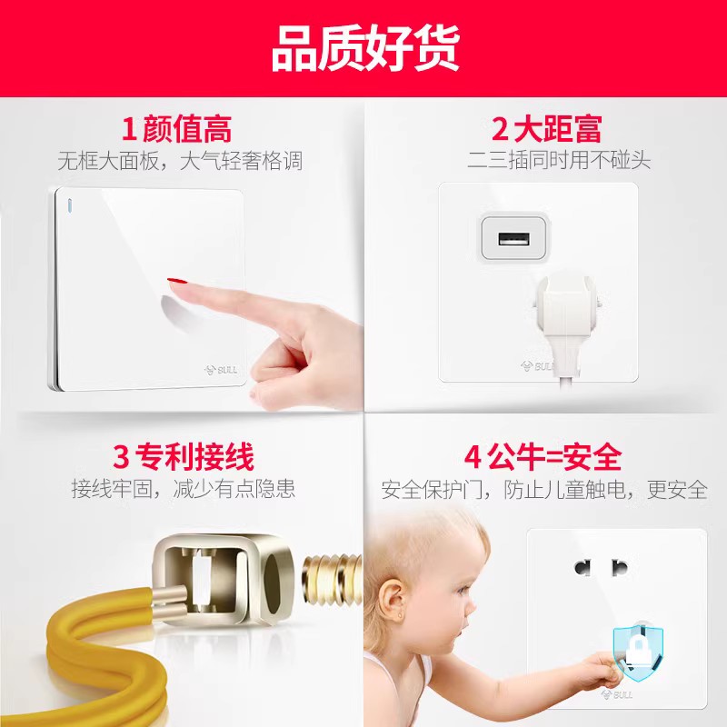 Hot Pin Minimalist Large Plate Series Skew Five Holes 10A (Large Plate Panel-Home Dress Preferred) Positive Five Holes 10A (Large Plate Panel-Home Dress Preferred) Open Single Control (Upgrade 16A Bearing
