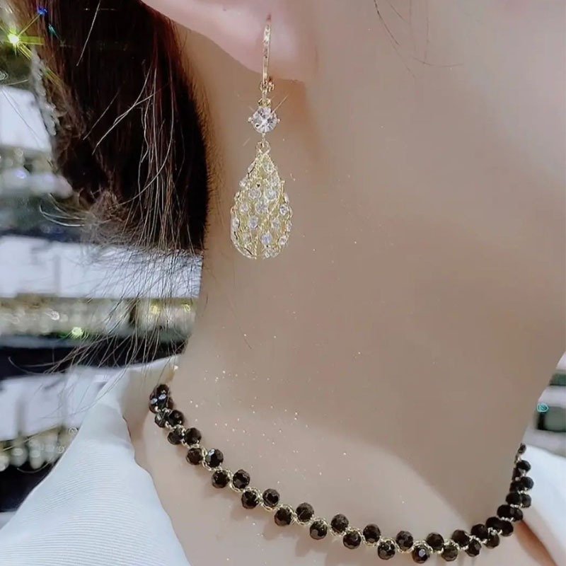 Otterles Clearing House Special Price 18K Gold Insert Drilling Drop Earrings Earrings Earrings Button Temperament 100 Hitch Pendant Earrings Accessories-Taobao