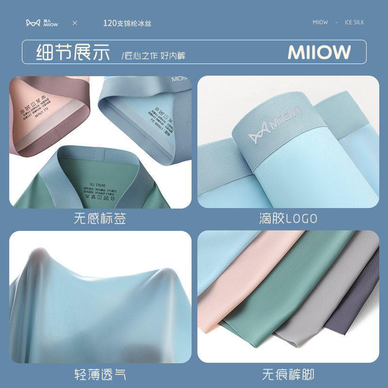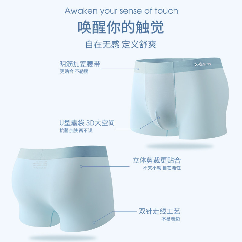 Cat men's underwear ice silk No marks Bacteriostatic Crotch Loose Movement Four-corner Pants Underpants Teenagers Flat Corner Pants Guy-Taobao