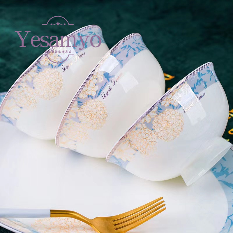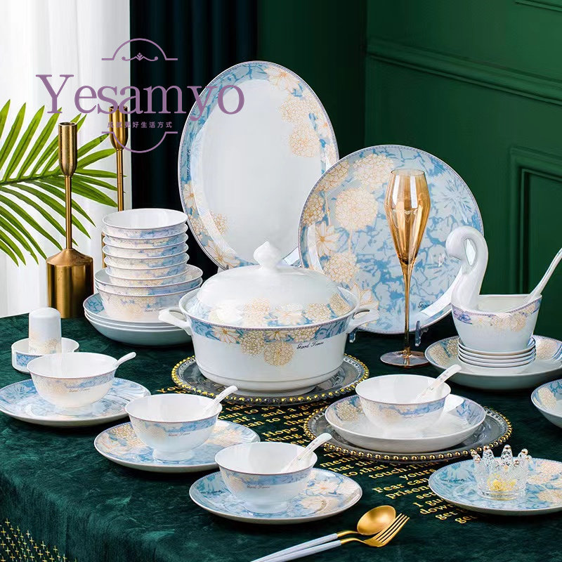 Yesamyo high-end bone china tableware simple European dish set underglaze color home dining plate bowl housewarming gift