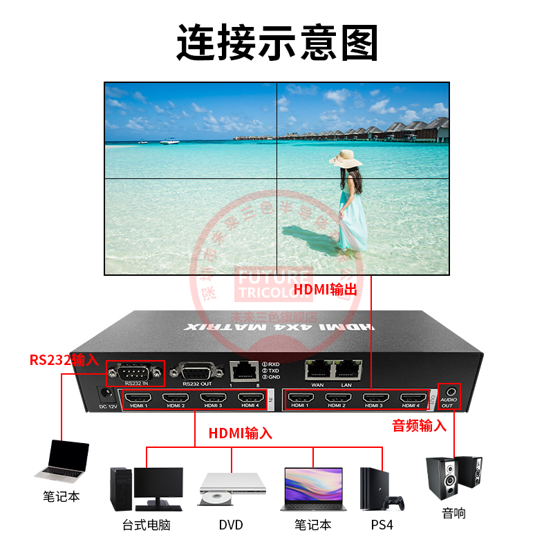 4-in 4-out video screen display TV splicing processor 4K high-definition four-picture HDMI matrix switcher-Taobao