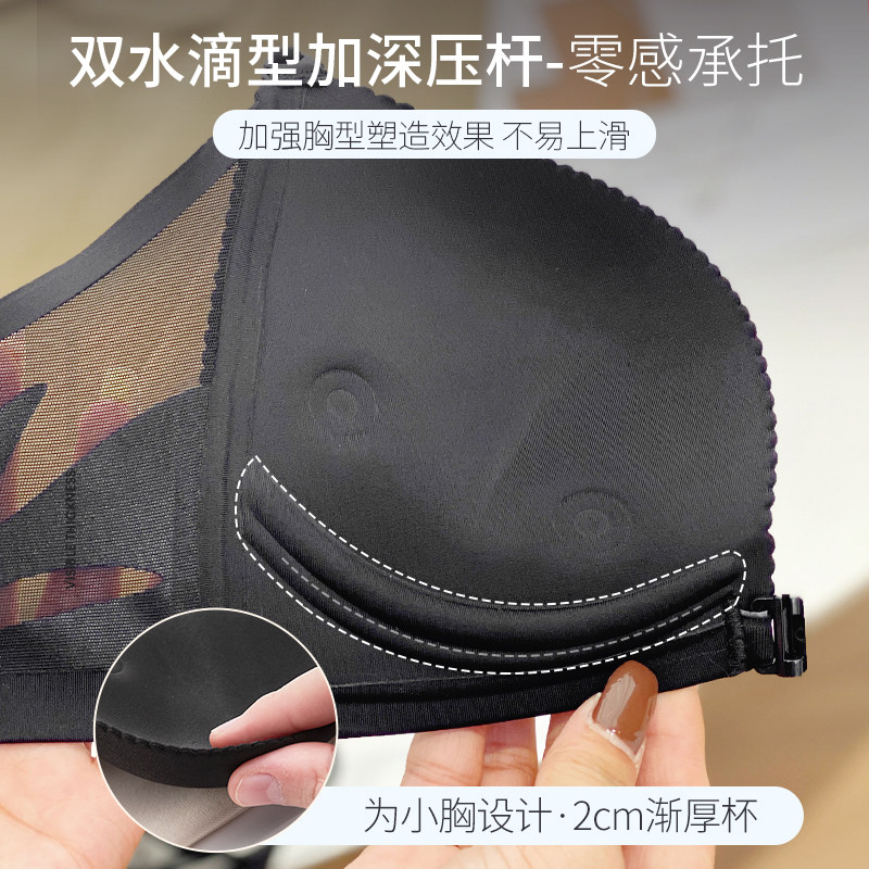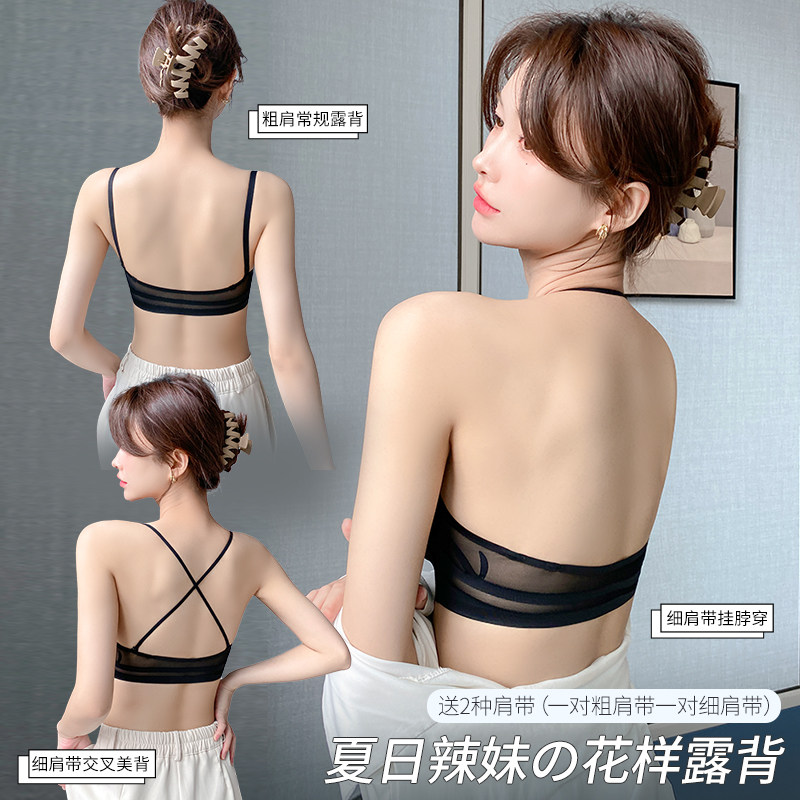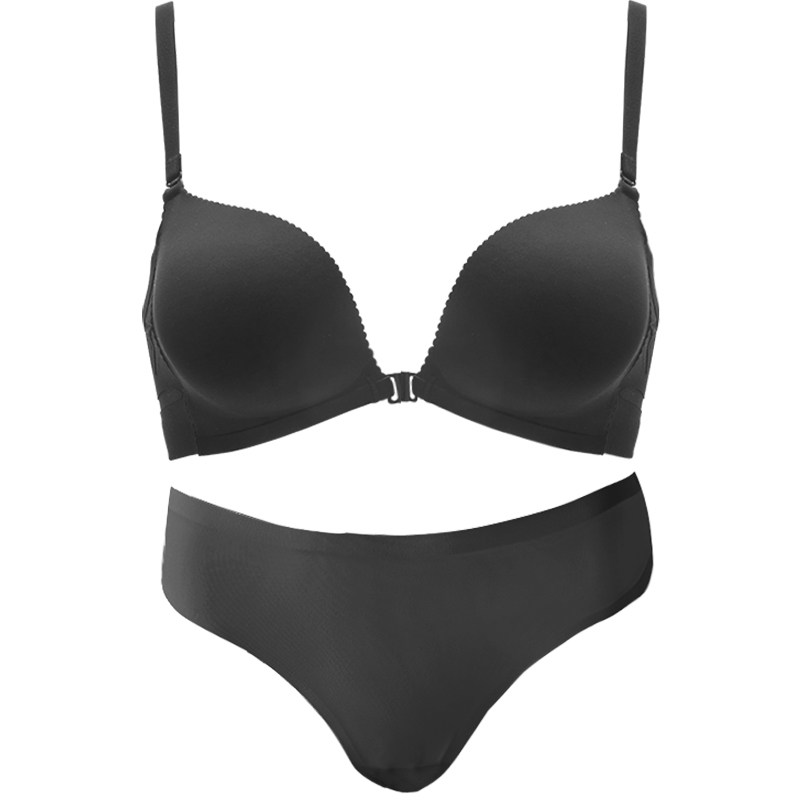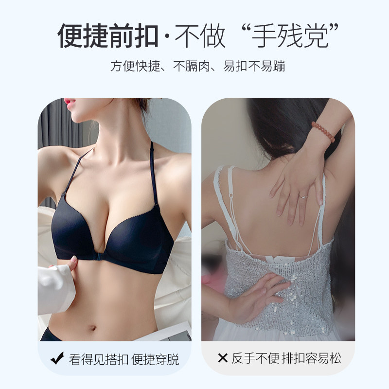 Brand special cabinet hanging neck type beauty back black underwear 2023 new female small breasts to gather without mark front button bra cover thick-Taobao