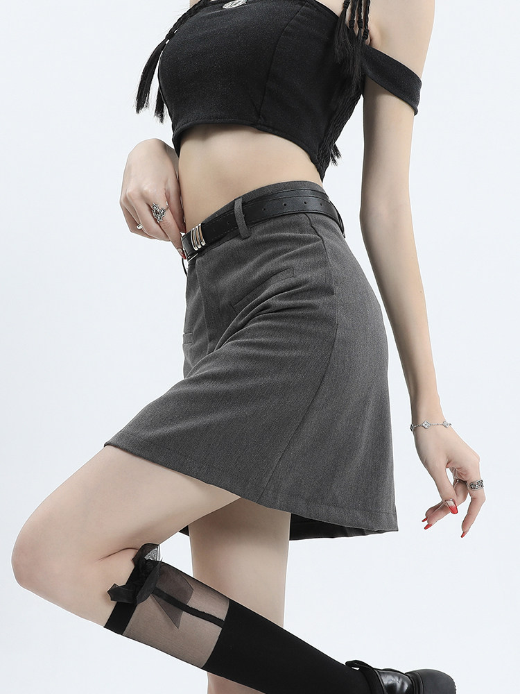 La Chapelle gray high-waisted suit short skirt for women in summer 2025 new college style a-line hip skirt