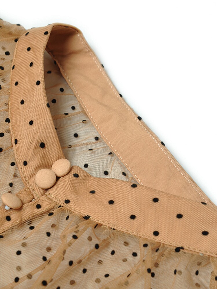 Fatal Attraction bubble short-sleeved see-through mesh elastic waist polka dot big swing princess dress