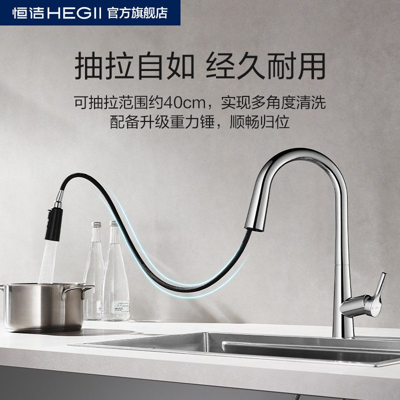 Hengjie pull-out cold and hot washing basin tap telescopic rotary kitchen sink anti-splash zinc alloy tap-Taobao