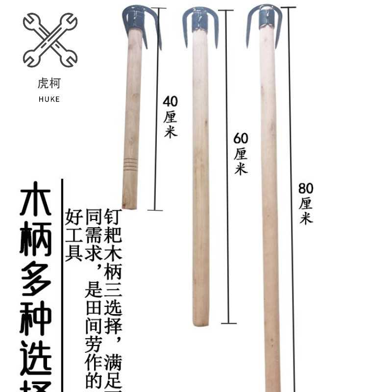Two - tooth rake (single) 35cm wood handle Two - tooth rake 60 cm wood handle Two - tooth rake 80 cm wood handle Three - tooth rake 35cm wood handle